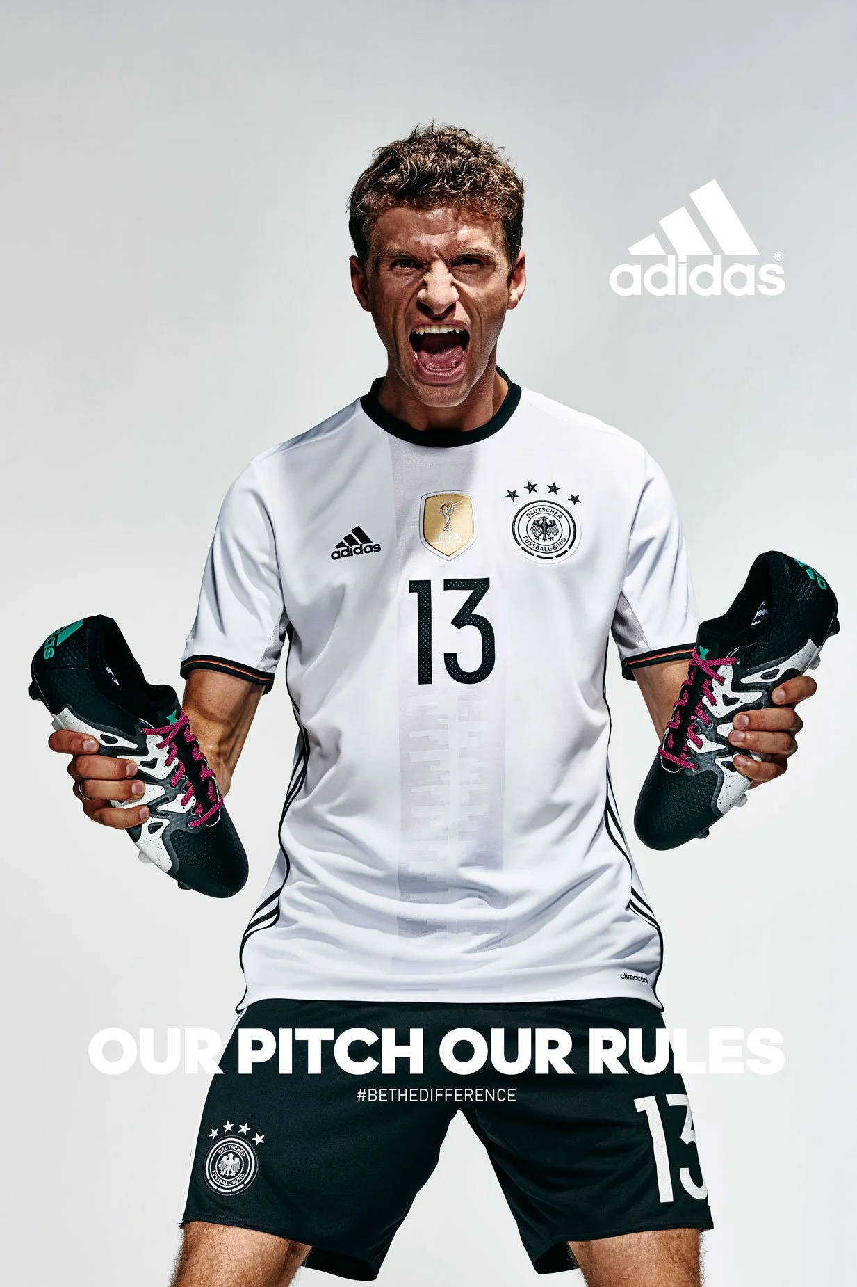 As part of Adidas' #bethedifference campaign and the build up to the Euros, we got the whole German National team together to create a powerful Youtube film and posters taunting the rest of Europe to ‘come and have a go’ at the inexorable Germans.